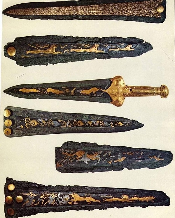 Ornamental knives from the Mycenean culture of ancient Greece. These