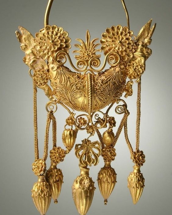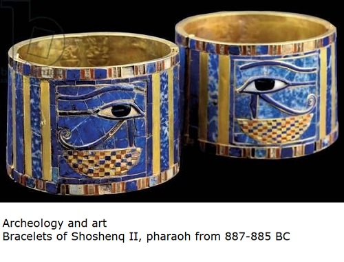 This pendant of gold and lapis lazuli is part of “The Treasure of Ur”,