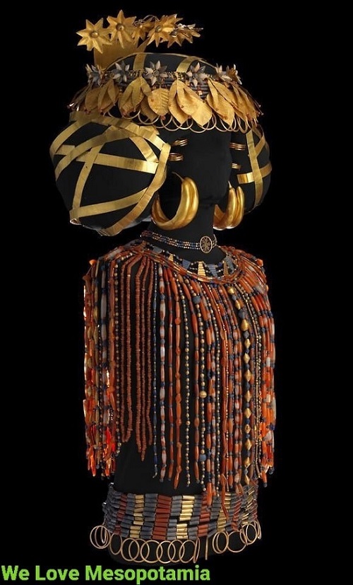 body of Queen Pu-abi in the Royal Cemetery at Ur, along with