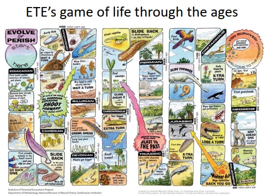 side by side, giant predator amphibians, and the Great Dying at the end.