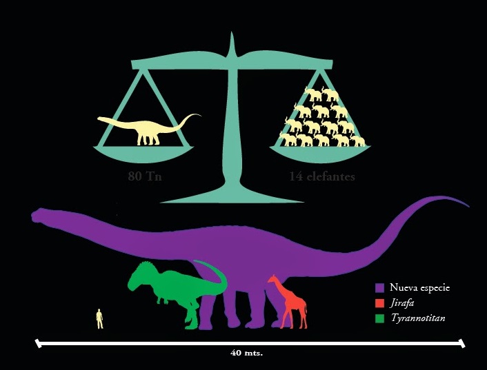 From Argentina: Newly discovered dinosaur (purple) size and
