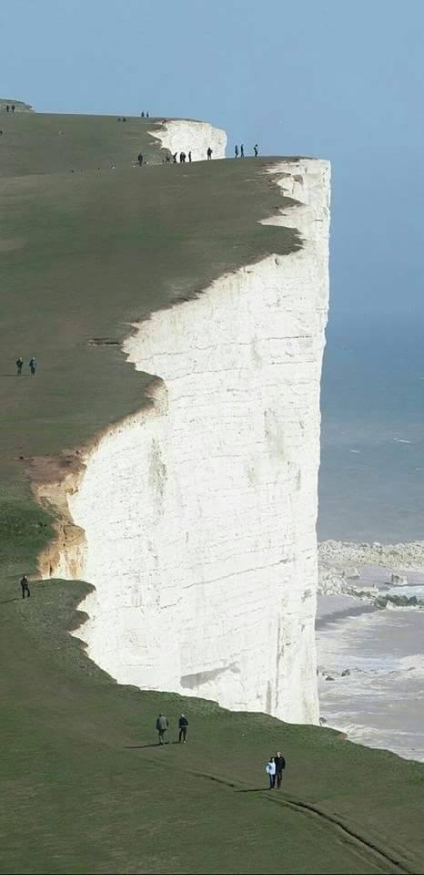 and ochre chalk outcrop with numerous fissures along its rim and even