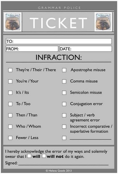 15 Grammar Goofs The big 15 that make teachers and employers lose it. You do not want to make these mistakes at work, let alone in school. Study this infografic! Written by Copyblogger and designed by Blue Glass.