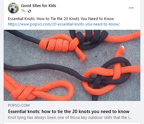 Animated Knots by Grog™ "TIE KNOTS THE FUN AND EASY WAY Better to know a knot and not need it, than need a knot and not know it." Well over 100 different knots, sorted by use: e.g. Arborist Knots, Boating, Climbing, Fishing, et c.; plus rope care, terminology, safety, and what's good rope for which job. Each know has a step by step slide show of how it's done, plus a video from YouTube. Now there's an app for most knots, too: Android, iPad, and iPhone. All the YouTube videos are organized into a channel.